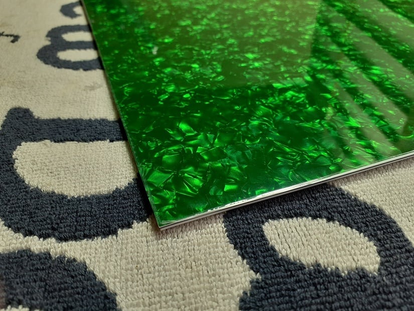 ストラトキャスターや、SGのラージピックガードが1枚分とれる大きさです。