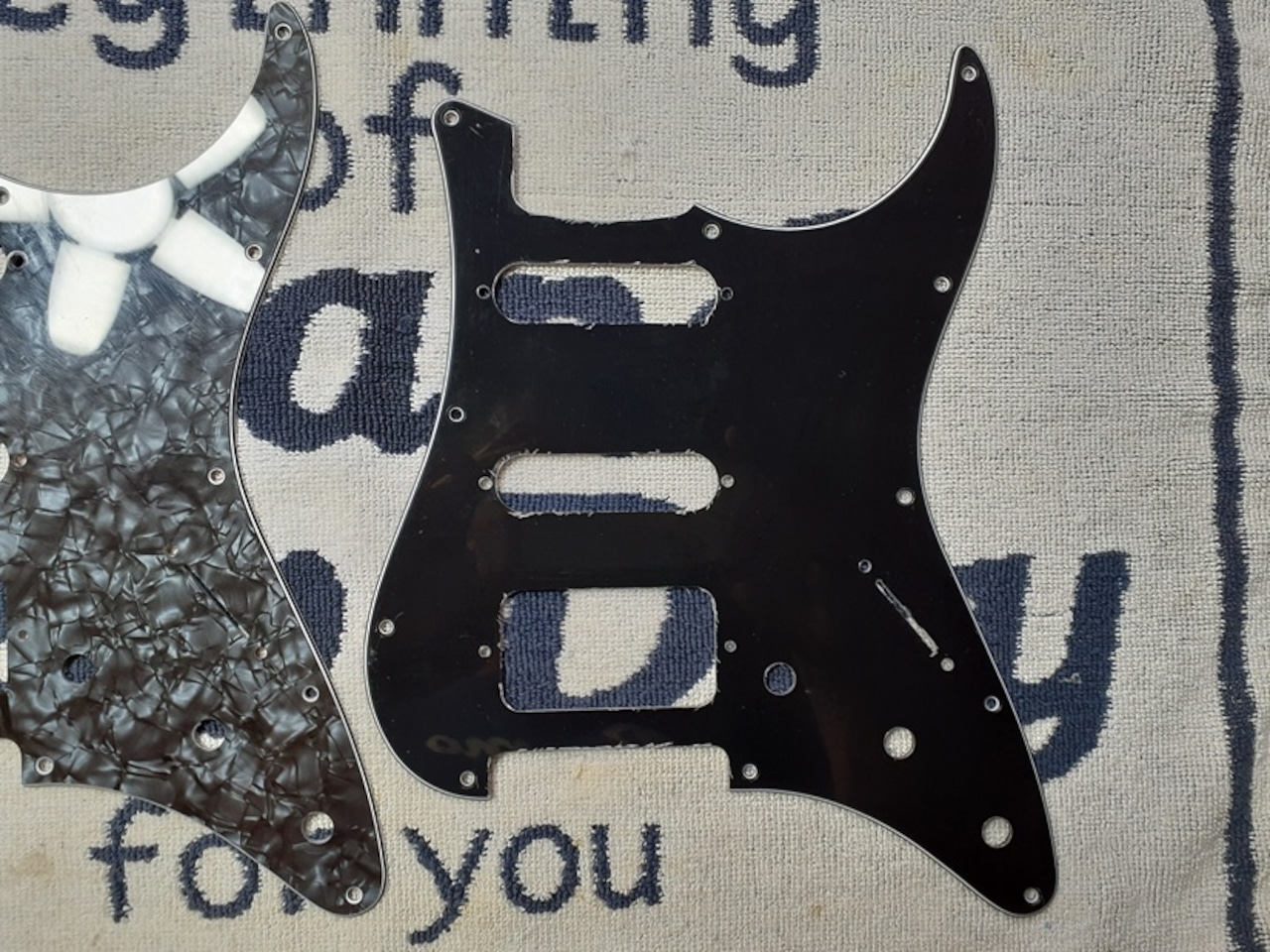 お客様から送付されたピックガードをテンプレートとし、素材・色違いのコピーを製作します。
