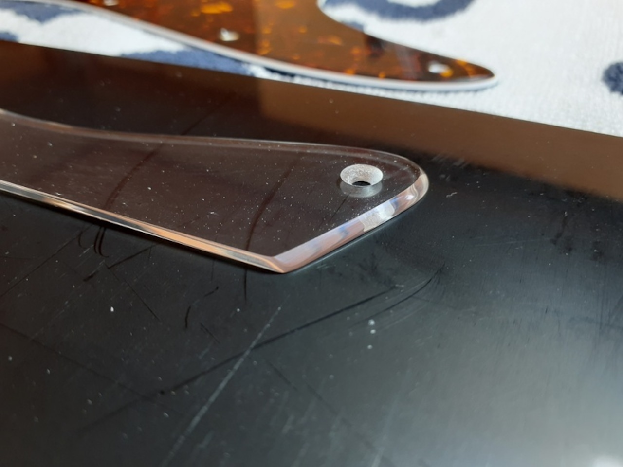 お客様から送付されたピックガードをテンプレートとし、素材・色違いのコピーを製作します。