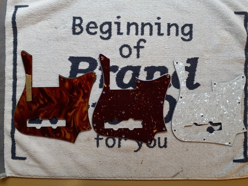 お客様から送付されたピックガードをテンプレートとし、素材・色違いのコピーを製作します。