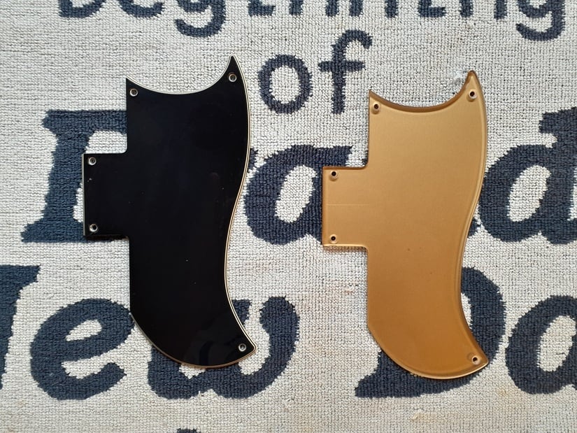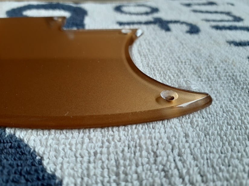 お客様から送付されたピックガードをテンプレートとし、素材・色違いのコピーを製作します。