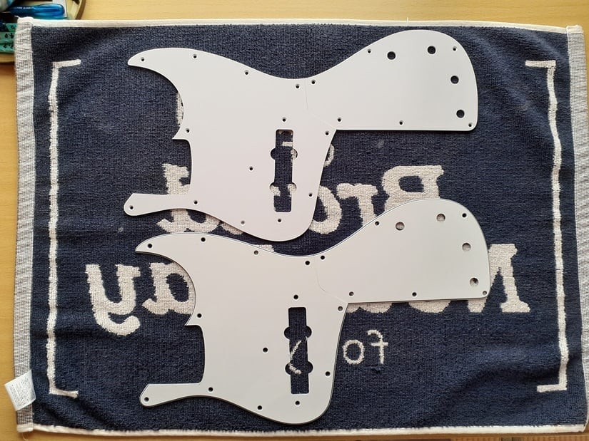 お客様から送付されたピックガードをテンプレートとし、素材・色違いのコピーを製作します。