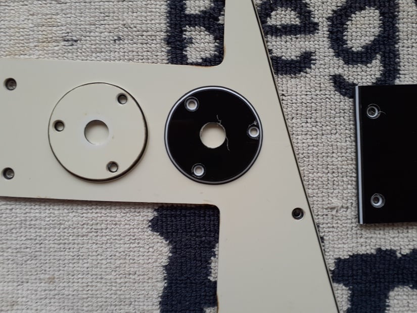 お客様から送付されたピックガードをテンプレートとし、素材・色違いのコピーを製作します。